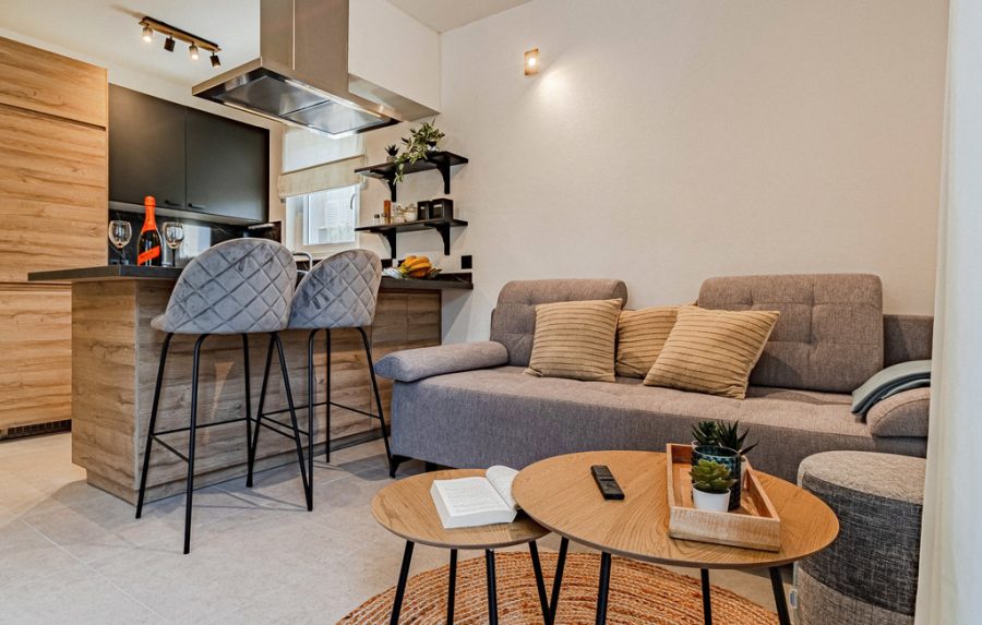 Apartmani su opremljeni raznim sadržajima potrebnim za odmor iz snova. Oba apartmana sadrže balkon kao i zajednički roštilj, perilice rublja i posuđa, aparate za kavu i mnogo drugih specifikacija koje čine boravak u ovim apartmanima ugodnijim.